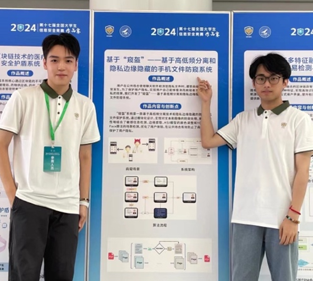 大三学年,我参与了一项手机文件防窥系统的设计与实现,通过与团队成员6个月的努力,团队最终斩获了2024年全国大学生信息安全竞赛全校唯一的国家级一等奖。这期间我们的想法屡次碰壁,也经历过连续数天努力化为泡影的沮丧,但我们愈加坚定要迎难而上的信念,尽己所能地打磨每一个细节,完善这个看似微小却承载心血的作品,最终才换来了这张来之不易的奖状。