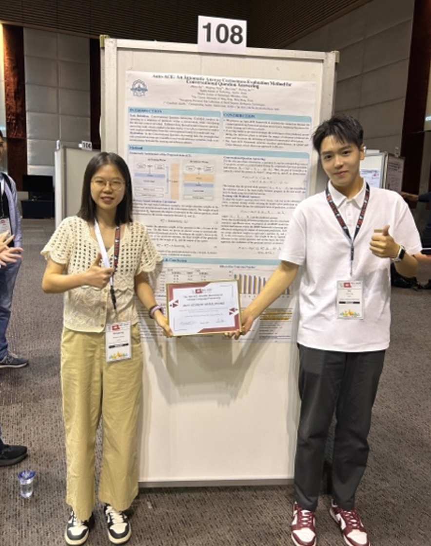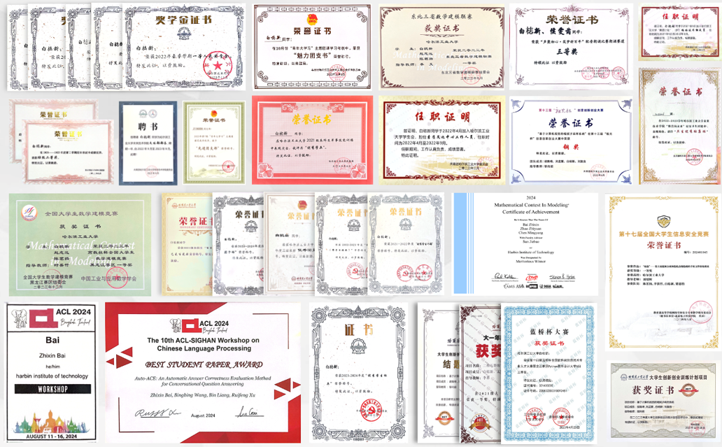 在意识到自己并非绩点选手之后,我果断将重心转向科研工作与学科竞赛,大二时,我主动申请加入哈工深人类语言技术研究团队,并开始与好友组队尝试参与比赛,一路走来我愈发坚定,我选择了一条适合自己的道路。